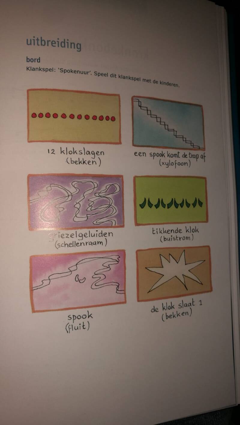 vraag de kinderen of ze wel eens bang zijn en vraag ze ook waarvoor. laat kinderen griezel geluiden nadoen. zing het lied voor en ga het dan vanuit het geheel aanleren. je kunt ook nog het klankspel spelen met de kinderen. laat ze ook nog improviseren op het instrument en laat de ander die geblinddoekt is of zijn ogen dicht heeft raden op welk instrument het kind geluid heeft gemaakt. zorg ervoor dat je hiervoor moeilijkere ritme instrumenten uit het Orff instrumentarium gebruikt. bijvoorbeeld de woodblock en claves zijn moeilijker te onderscheiden. Leer ze ook de namen van de instrumenten dit draagt bij aan de ontwikkeling van de woordenschat.